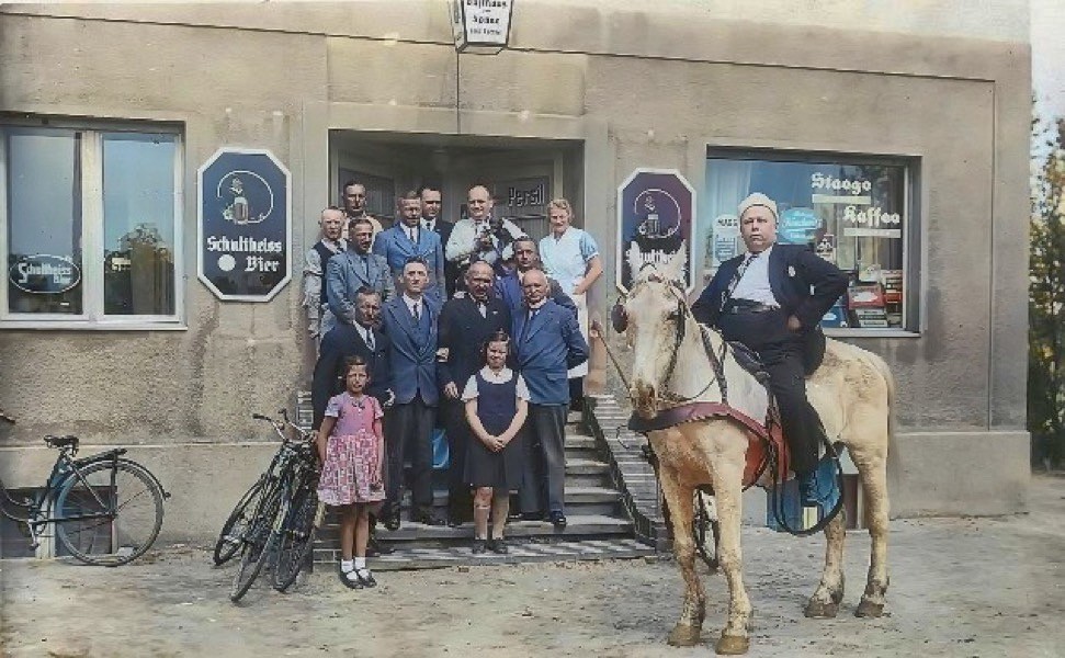 | 1931 | Reinhold Marschall verkauft aus einem ausrangierten Eisenbahnwagen in der Rheinstraße Getränke und Lebensmittel. Der gemütliche, aber wohl nicht ganz offizielle Ausschank wird zum beliebten Treffpunkt der Anwohner. |